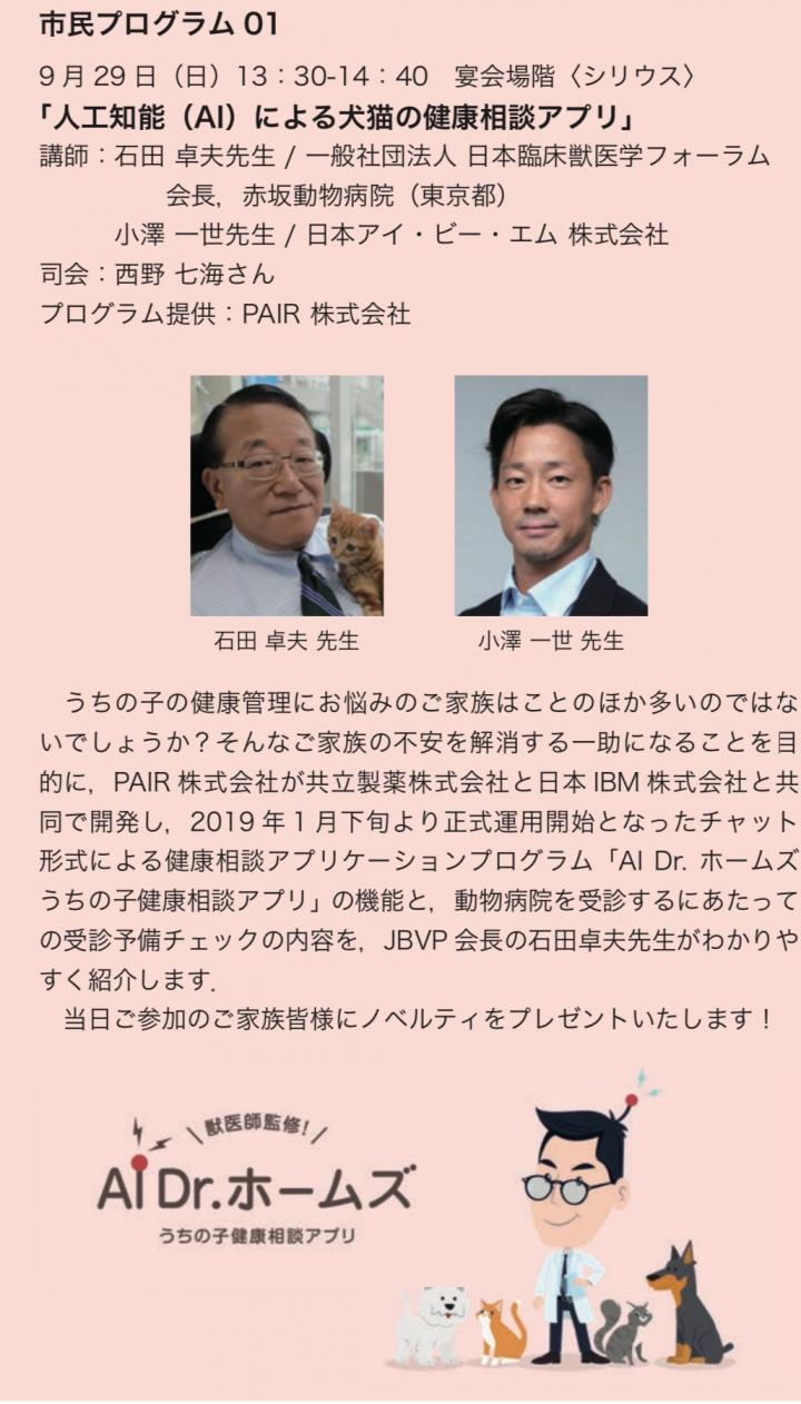獣医師さんの知識がつまったペットの健康相談アプリ「AI D r.ホームズ」などを紹介する予定です。
